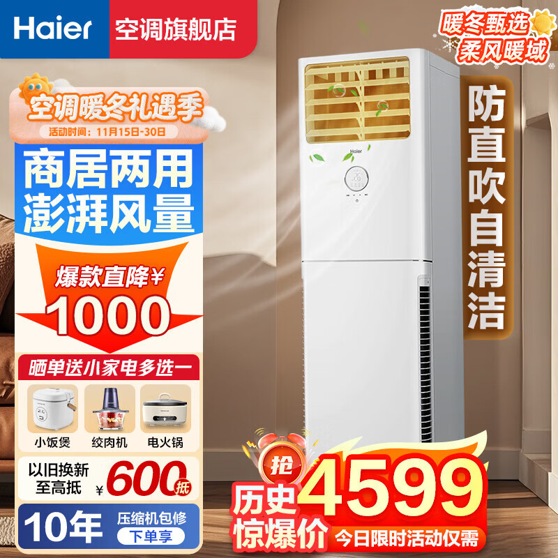 海尔(Haier)空调柜机 大3匹立式 变频冷暖节能 快速冷热省电一键自清洁 独立除湿家用商用客厅空调方型柜机 3匹 三级能效 防直吹-独立除湿 【25年款】【店长推荐】