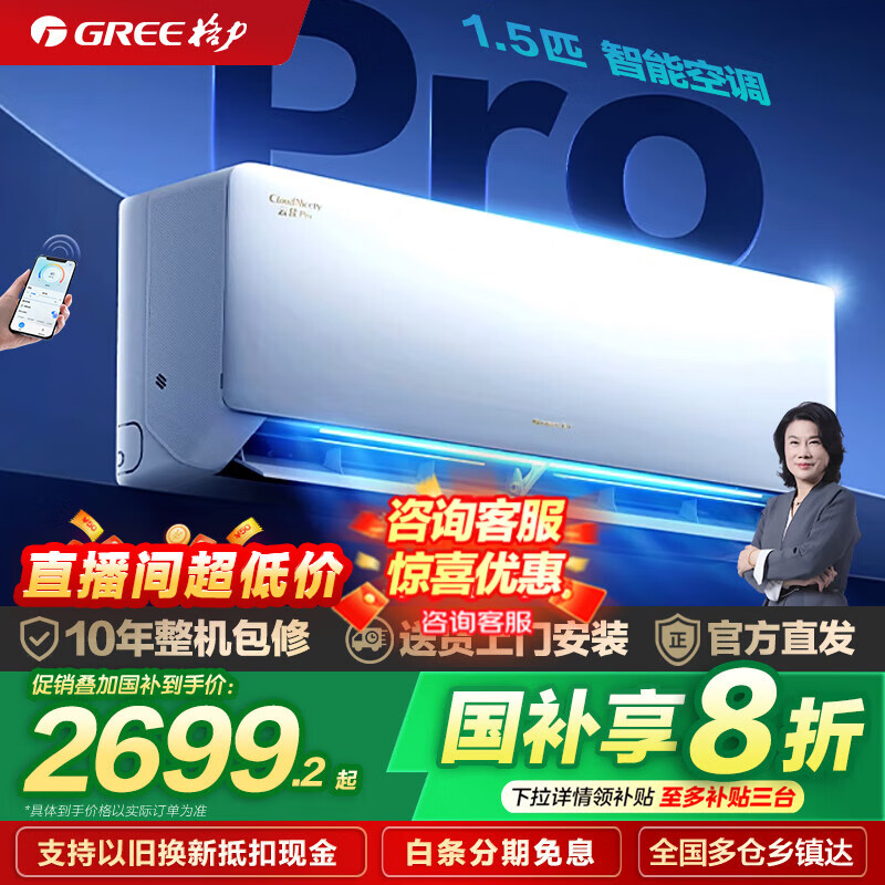 格力(GREE)空调 云佳Pro 1.5匹/1匹 新一级能效 变频冷暖 卧室空调挂机壁挂式 智能WiFi 净菌自清洁 以旧换新 1.5匹一级能效丨云佳pro 新品上市