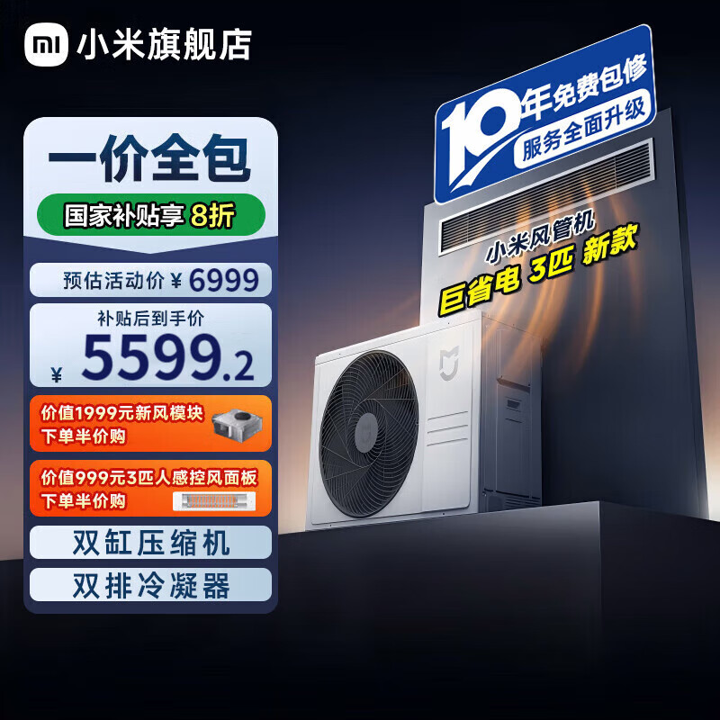 小米(MI)米家 26款3匹风管机 中央空调一级能效嵌入式空调智能互联节能省电变频冷暖空调客厅家用一价全包 巨省电 3匹 一级能效 75FW-OC20/N3B1