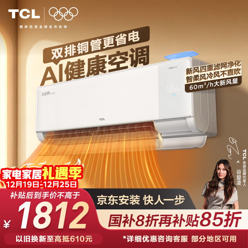 TCL空调京东联名小蓝翼Q7Pro新风大1.5匹新一级能效变频纯铜管冷暖挂壁式KFR-35GW/YQ7Ea+B1国家补贴
