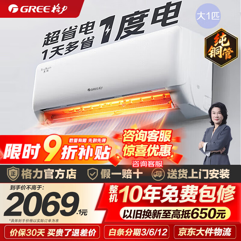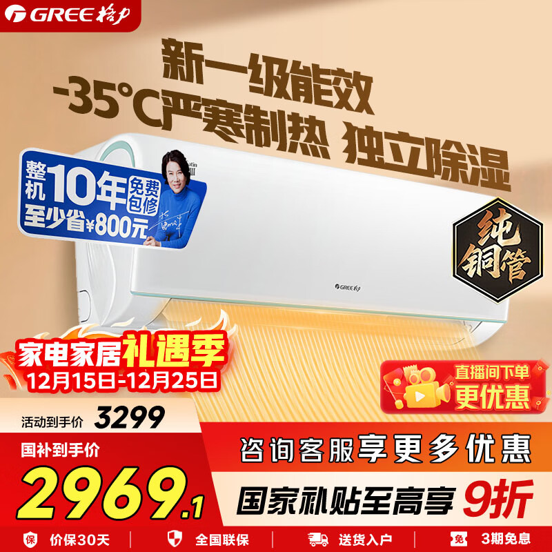 格力(GREE)空调天仪1.5匹/大1匹新一级能效变频壁挂式卧室省电空调挂机快速冷暖独立除湿以旧换新国家补贴20% 大1匹 一级能效丨天仪【适用10-16㎡】