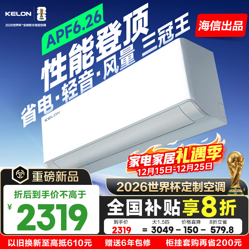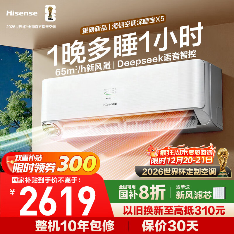 海信新风空调深睡宝X5 世界杯定制空调 语音控制 双排铜管 大1.5匹挂机 1级能效KFR-35GW/X5E1-1