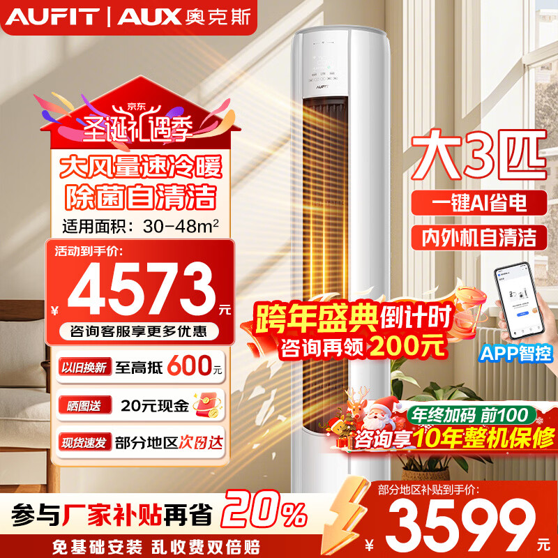 AUFIT空调奥克斯(AUX)出品大3匹柜机新一级变频冷暖自清洁家用客厅大标间大风量立柜式国补20%空调 3匹 一级能效【25年新品】防直吹AFQA1(B1)
