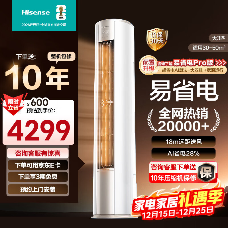 海信大3匹易省电E500立式空调柜机一级落地家用客厅以旧换新补贴