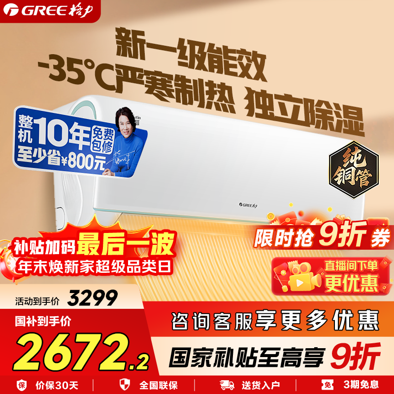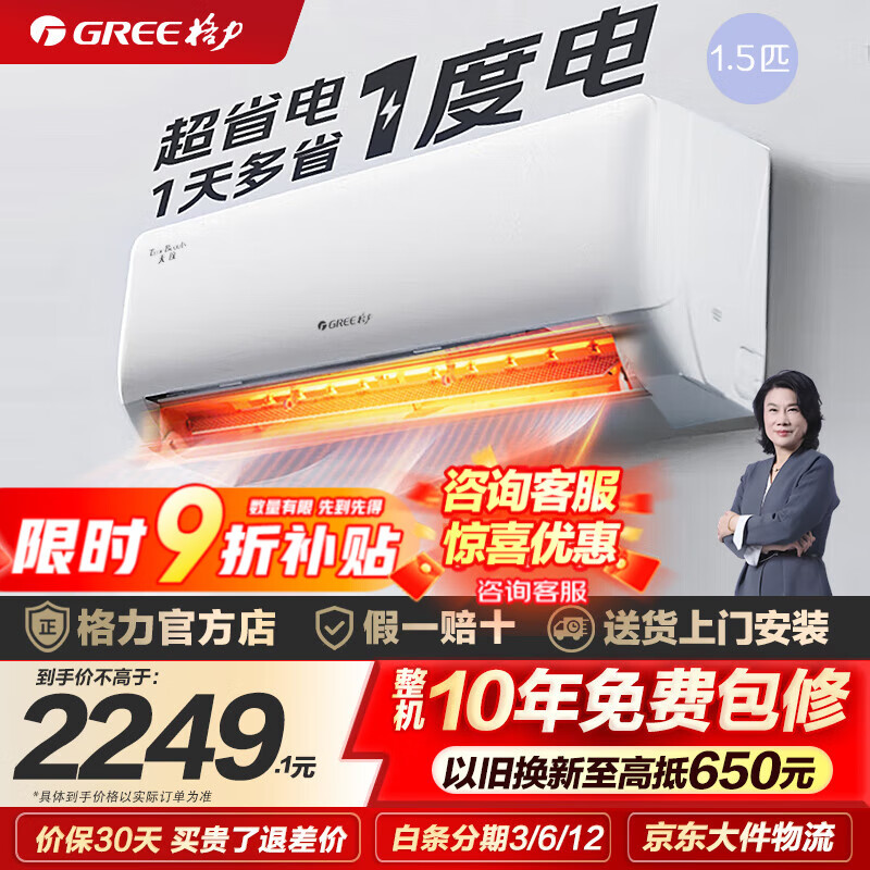 格力(GREE)空调1.5匹 天仪新一级能效 变频冷暖 56°C自清洁 卧室壁挂式空调挂机 1匹 一级能效 【天仪】新品上市