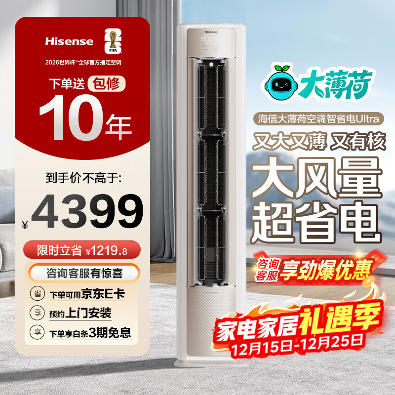 海信大薄荷空调【咨询抢优惠】智省电Ultra 柜机 大3匹 AI省电 仿真自然风 新一级能效 国家补贴20% KFR-72LW/E370Pro-X1