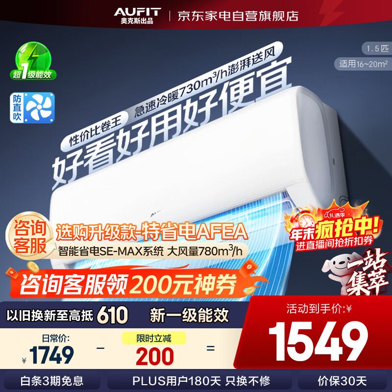 AUFIT空调奥克斯出品1.5匹新一级能效变频挂机【25年新款】空调KFR-35GW/BpR3AQG29a(B1)以旧换新