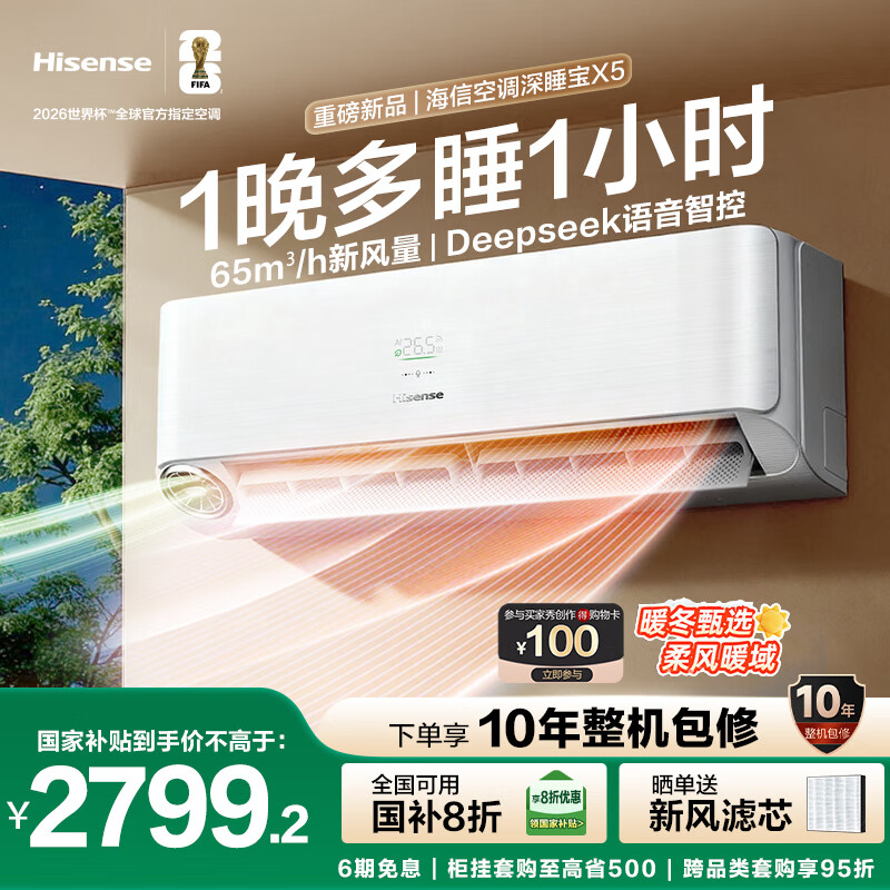 海信(Hisense)深睡宝X5 世界杯官方指定空调 大1.5匹 AI洁净新风 DeepSeek 语音智控 国家补贴20% KFR-35GW/X5E1-1