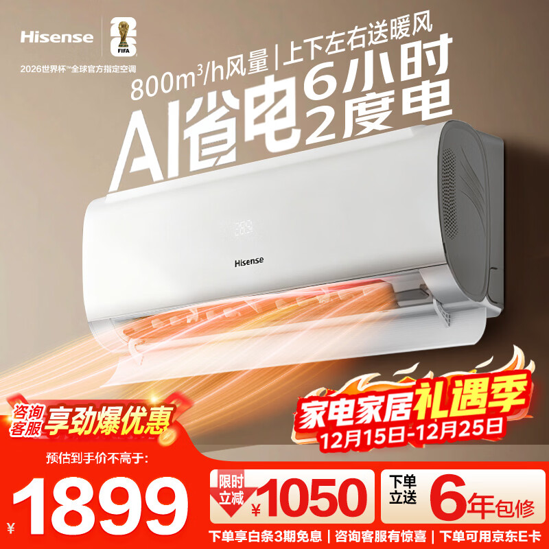 海信(Hisense)大1.5匹空调挂机【咨询客服享大额优惠】 易省电 AI省电 速冷热 大风量 新一级能效 卧室壁挂式 大1.5匹一级能效【800m³/h大风量】E290 享压缩机十年包修权益