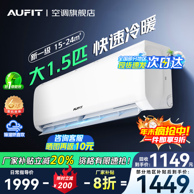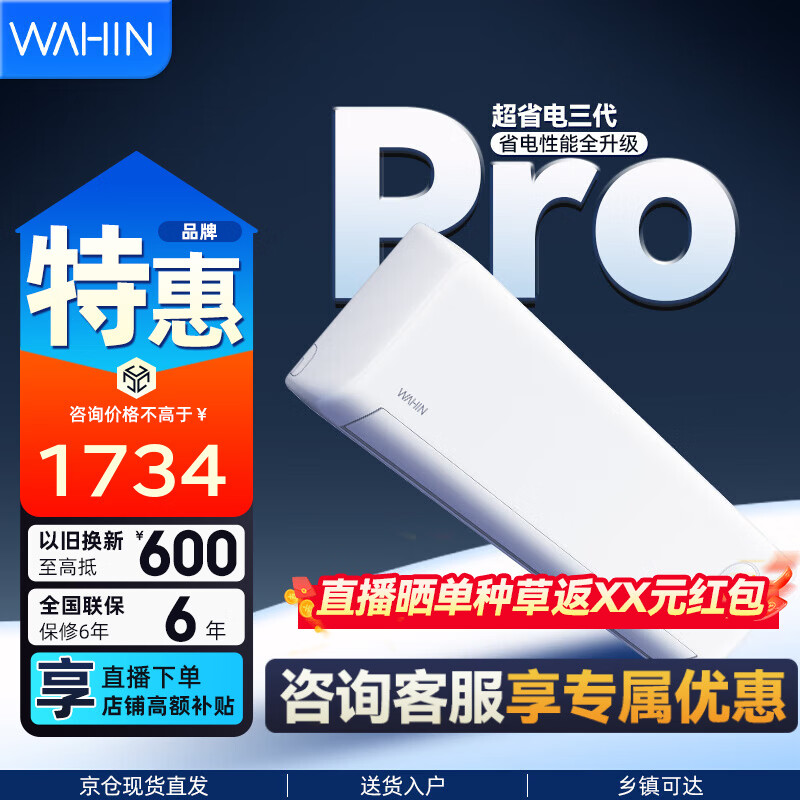 华凌空调 神机二代超省电MAX 卧室挂机超一级能效 变频冷暖大风口客厅卧室空调挂机升级PRO 超省电pro 【AI极致省电】 1.5匹 PRO升级款