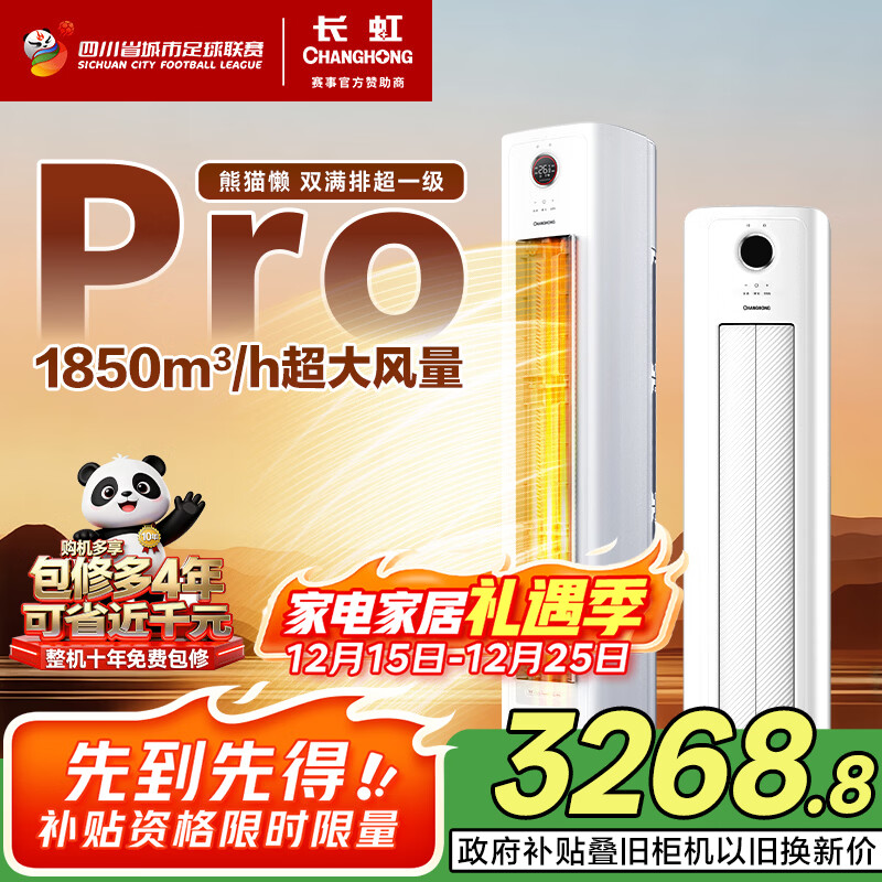长虹空调大1.5匹熊猫懒Pro超一级省电纯铜管冷暖挂机国家补贴以旧换新KFR-35GW/ZDCSW1+RA(PR)十年包修