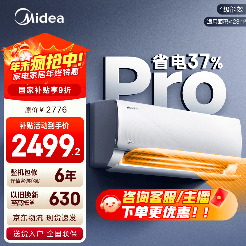 美的空调 爆款推荐 酷省电 新一级能效 变频冷暖 家电国家补贴入口 节能省电家用卧室挂机 以旧换新 酷省电Pro 大1.5匹 省电37%