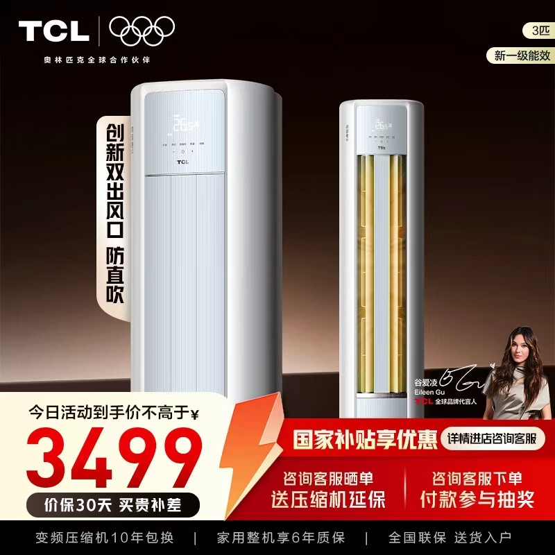 TCL空调柜机 新一级能效 真省电SE柜机 节能省电空调冷暖 客厅立式空调 双出风口 国家补贴20%空调 3匹 一级能效 真省电SE柜机