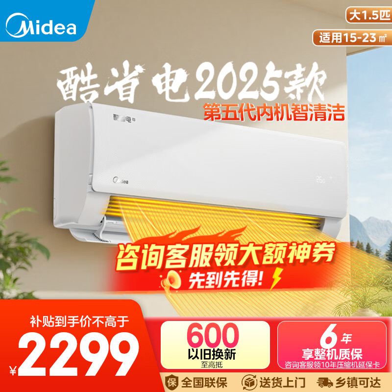 美的(Midea)空调挂机1.5匹/2匹酷省电2025款 新一级能效变频冷暖家用自清洁壁挂式 家电以旧换新 酷省电2025版 大1.5匹 一级能效