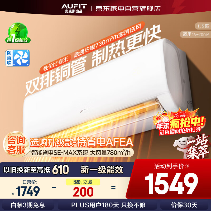 AUFIT空调奥克斯出品大1.5匹挂机【25年新款】新一级能效变频冷暖空调以旧换新KFR-35GW/BpR3AFQG(B1)