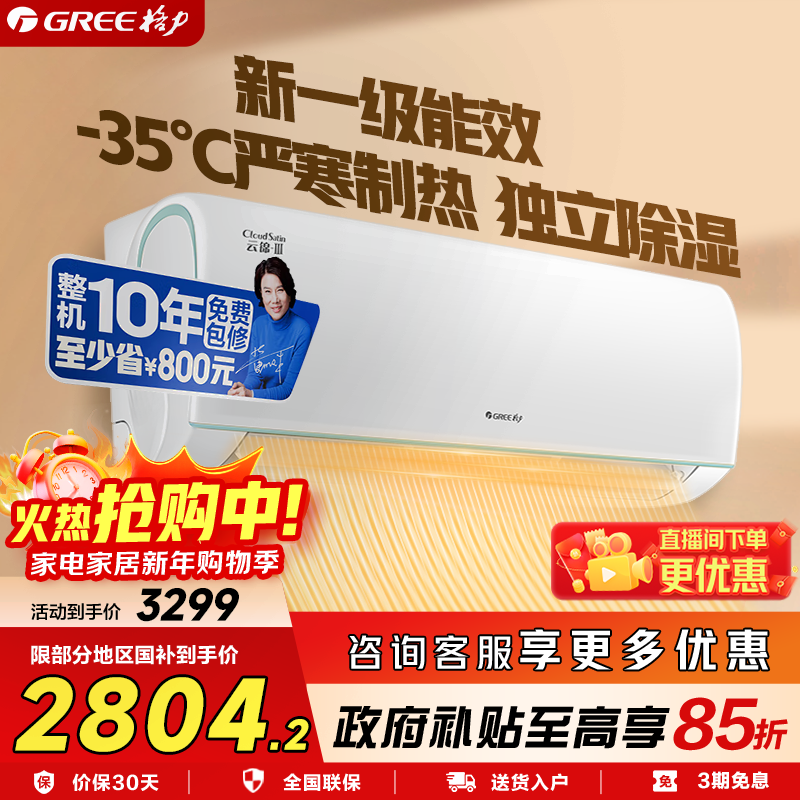 【政府补贴】格力空调一级能效大1匹冷暖挂机云锦pro官方旗舰店