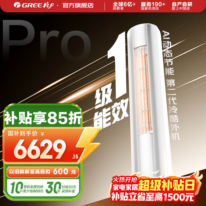 格力(GREE)空调 云逸/云佳Pro 3匹 变频冷暖 自清洁 智能WiFi 大风量 家用客厅 立式柜机 家电补贴以旧换新 云佳Pro 一级能效 3匹