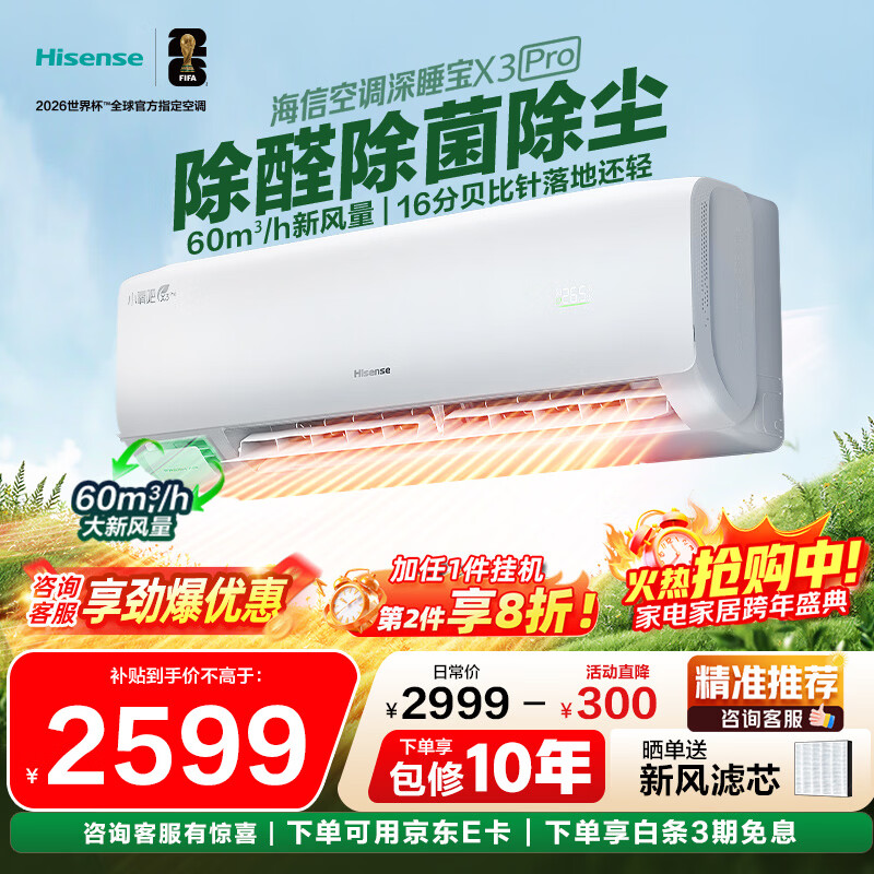 海信空调深睡宝新风大1.5匹X300Pro家用挂机一级能效壁挂式冷凝