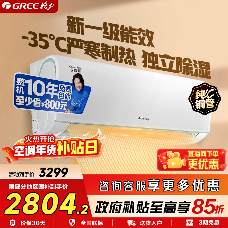 格力(GREE)空调1.5匹 云锦三代/云锦pro 新1级变频冷暖自清洁 WIFI智控节能省电独立除湿 壁挂式卧室空调挂机 云锦III 1.5匹 新升级【店铺热销】