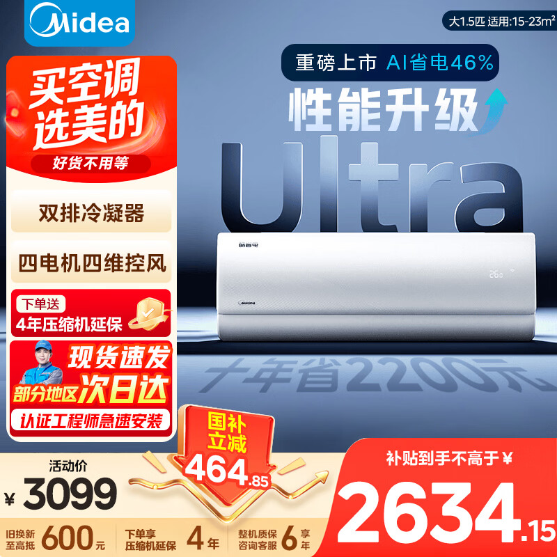 美的(Midea)酷省电 爆款推荐 空调挂机 大1.5匹新一级能效全直流变频节能低噪音防直吹 以旧换新 国家补贴 酷省电Ultra 大1.5匹 进阶版 一级能效