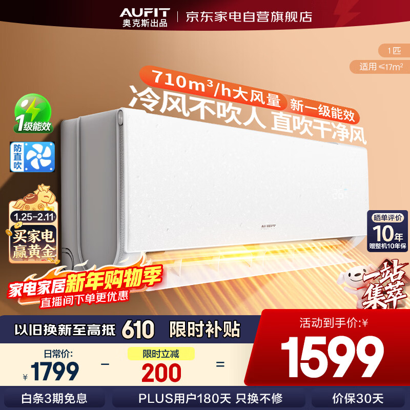 奥克斯(AUX)空调大1匹挂机省电侠pro家用冷暖新一级能效省电节能家电升级挂机挂机空调卧室壁挂式厂家补贴15% 省电侠Pro 大1匹 新一级能效变频