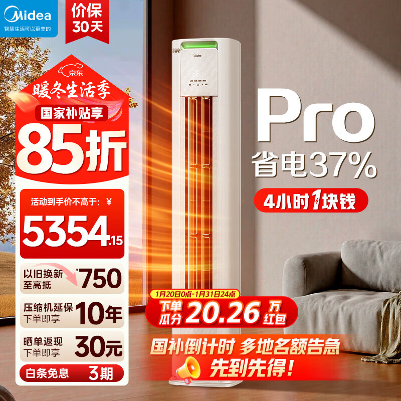 美的(Midea)酷省电3匹新一级能效PRO变频冷暖 客厅空调柜机立式 APP 独立除湿 升级款 国家补贴 以旧换新 酷省电 大3匹 一级能效 酷省电PRO柜机