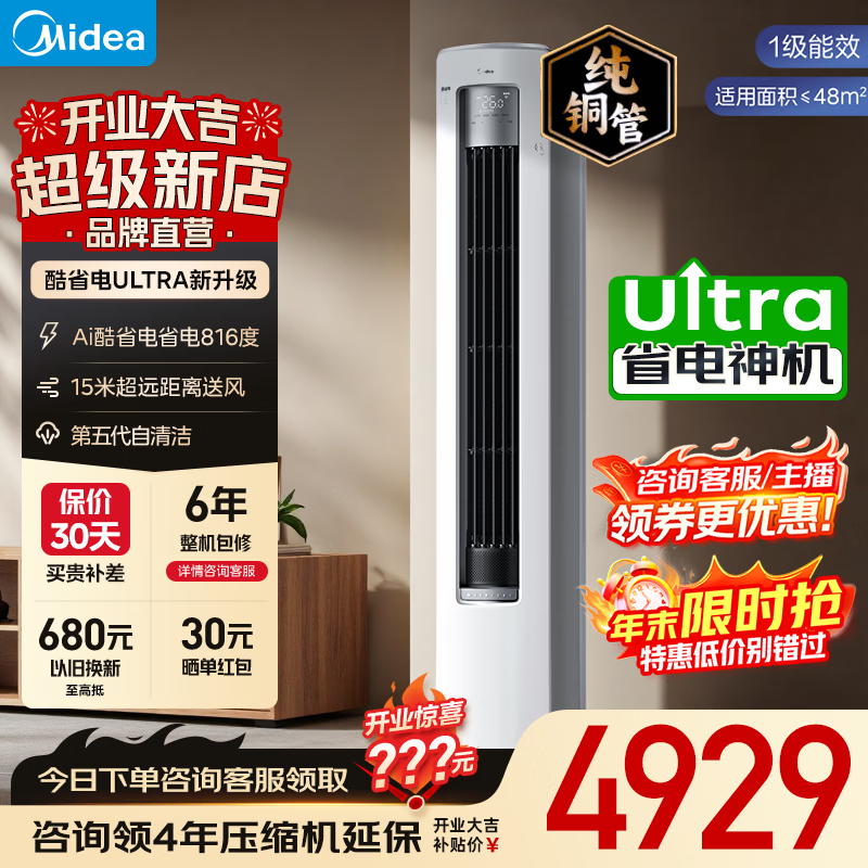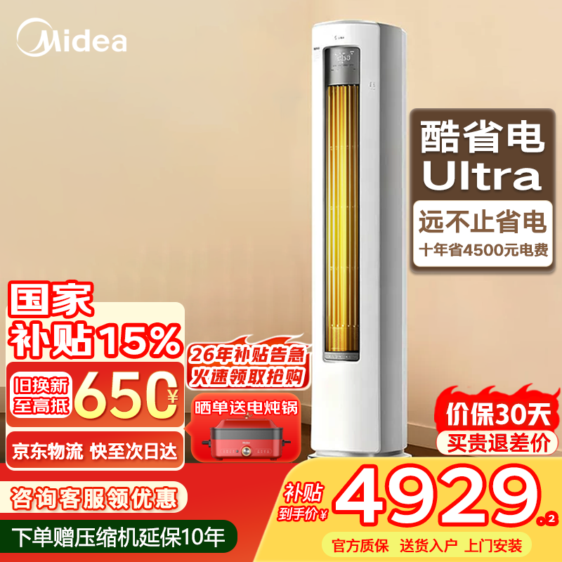 美的(Midea)空调立式大3匹 酷省电Ultra柜机 一级能效 变频节能冷暖家用客厅大风量圆柱空调柜式智能空调补贴 酷省电Ultra 大3匹 大双排铜管 更省更强