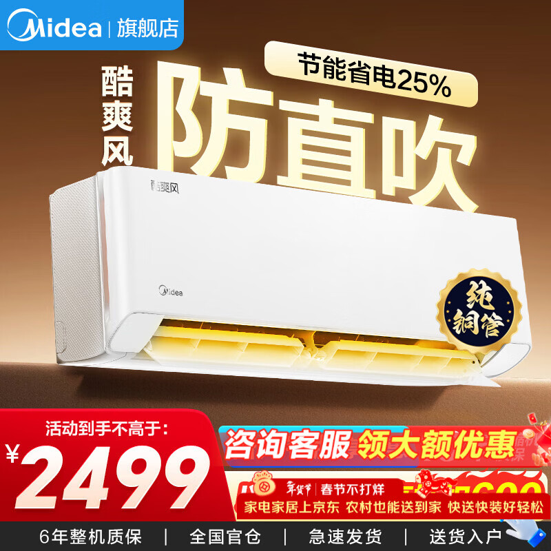 美的空调1.5匹/1匹 酷省电 新一级能效 冷暖变频 节能省电 智能除湿防直吹以旧换新家电补贴20% 酷爽风(酷省电同款) 大1.5匹 高性价比