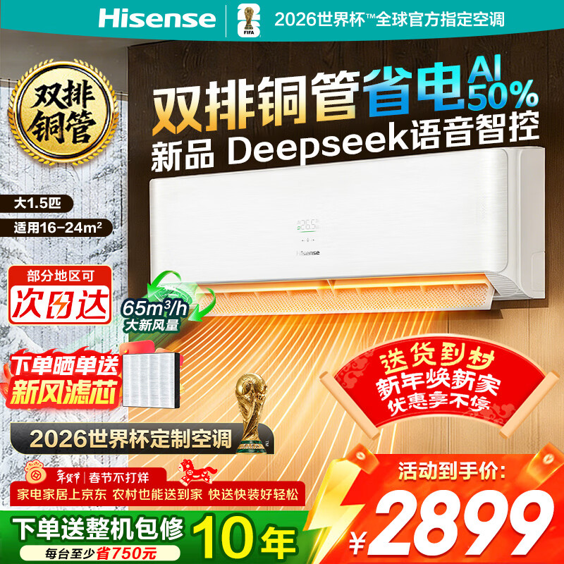 海信新风空调深睡宝X5 世界杯定制空调 语音控制 双排铜管 大1.5匹挂机 新1级能效 国家补贴15% 限时优惠 KFR-35GW/X5E1-1