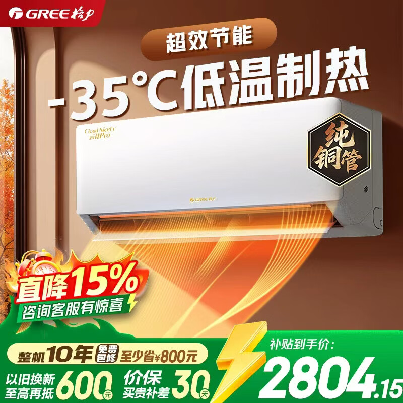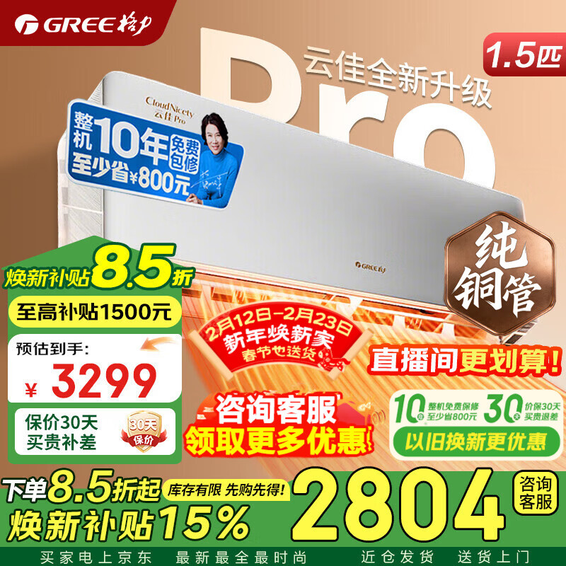 格力(GREE)云佳pro空调挂机家用 大1/1.5匹新一级能效纯铜管 变频冷暖 节能省电卧室 官方正品家电国家补贴 云佳Pro 1.5匹 一级能效【纯铜管】新品上市