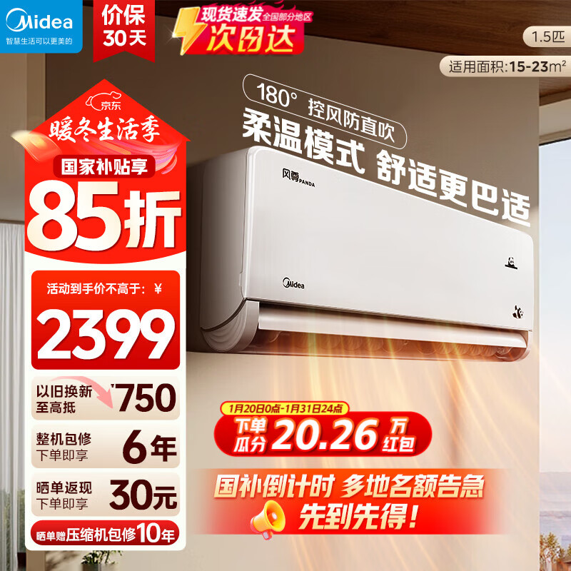 美的(Midea)风尊熊猫空调大1.5匹一级能效 全直流变频省电 冷暖两用家用卧室壁挂式 35MXC1panda 国家补贴 风尊 大1.5匹 一级能效风尊熊猫 PANDA 全国联保 配送