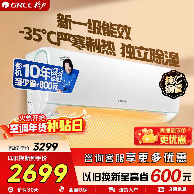 【Gree/格力官方】新一级能效大1匹变频冷暖卧室除菌空调挂机云轩