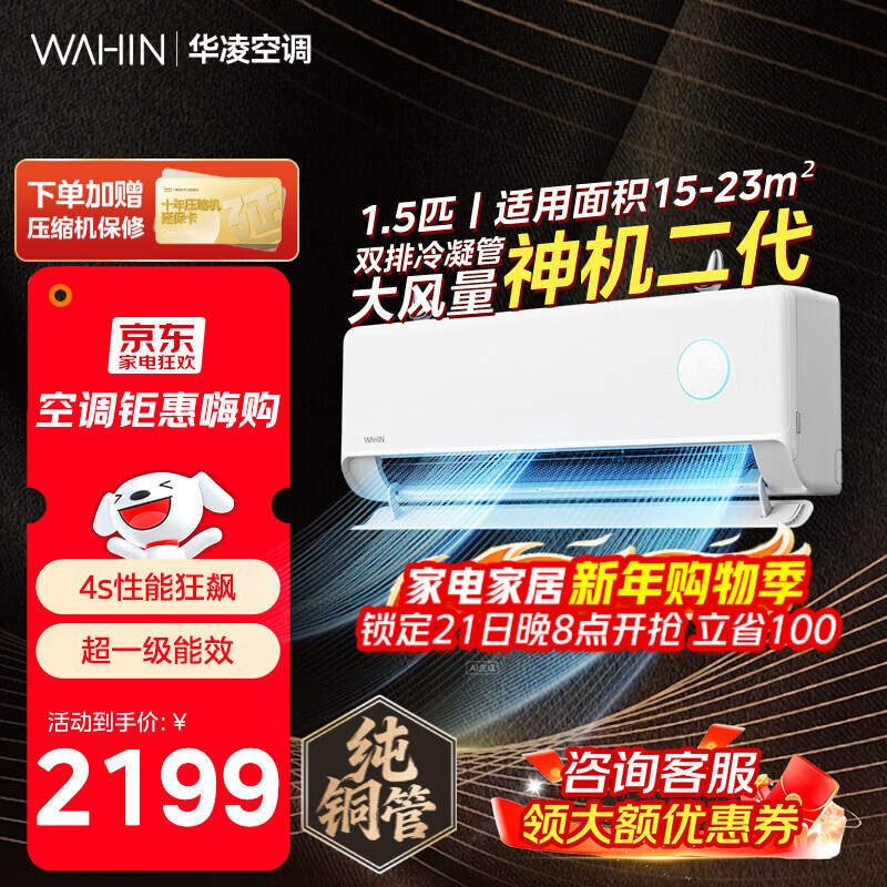 华凌空调 大1.5匹/2匹 双排铜管 神机二代Pro 超一级能效冷暖空调挂机 制冷制热双效节能 以旧换新 大1.5匹一级能效 神机二代35HEII