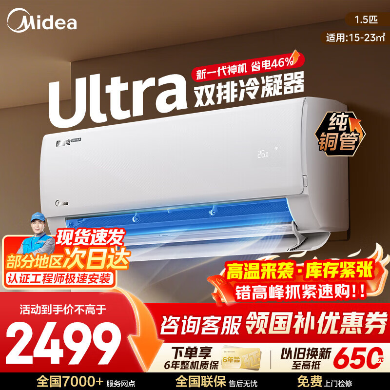 美的空调挂机酷省电新升级新一级能效变频冷暖壁挂式双排纯铜管防直吹五代自清洁家电补贴 酷省电Ultra 大1.5匹 顶配升级 省电46%