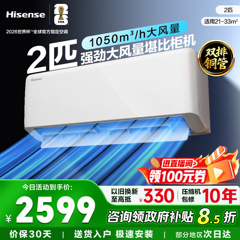 海信璀璨大力神智能新风空调X5大3匹一级能效柜机语音以旧换新