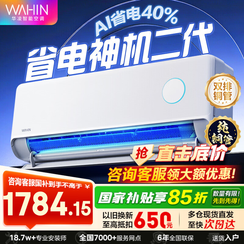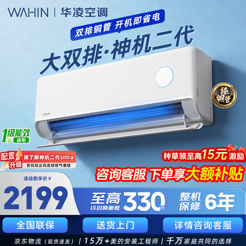 华凌空调 神机二代 大1.5匹空调 超省电Pro 超一级能效 华凌神机二代Pro 变频冷暖挂机以旧换新 大1.5匹 一级能效 神机二代 双排铜管