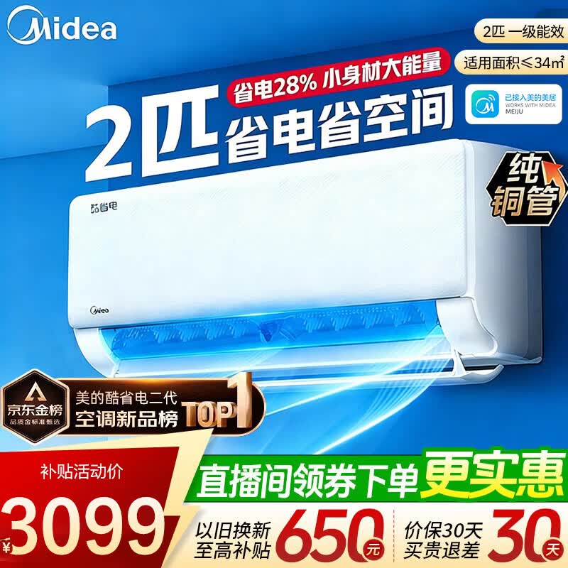美的(Midea)空调挂机 酷省电二代pro 店长推荐大1.5匹Ultra新一级能效全直流变频节能防直吹以旧换新 国家补贴 酷省电 大1匹 二代制冷省电40% 26年新款