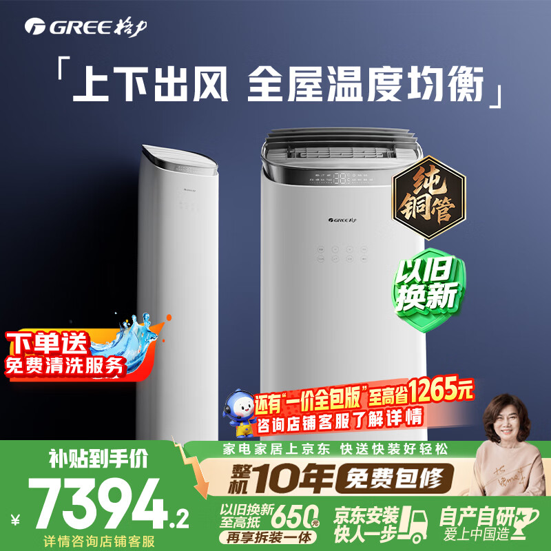 格力空调 京致 3匹 新一级能效变频 纯铜管上下出风舒适风不吹人客厅柜机 国家补贴 KFR-72LW/NhAj1BGj