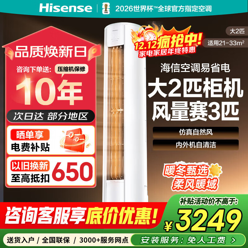 华凌空调 超省电柜机 两匹 客厅家用商用冷暖高温自清洁手机智能 立式 超省电 一级能效 大2匹 KFR-51LW/N8HA1Ⅲ