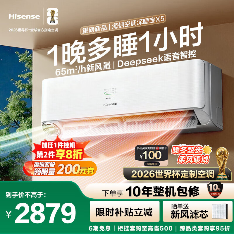 海信(Hisense)空调深睡宝X5 世界杯定制空调 大1.5匹 AI洁净新风空调 DeepSeek 语音智控 国家补贴20% KFR-35GW/X5E1-1