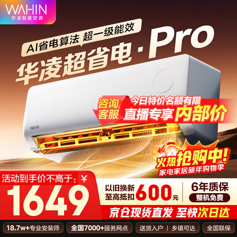 华凌空调大1.5匹超省电Pro 超一级能效华凌神机二代Pro 变频冷暖以旧换新 大1.5匹 一级能效神机二代Pro 双排铜管