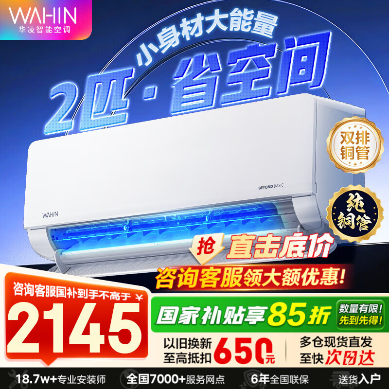 华凌空调 超省电MAX神机挂机 超一级能效大1.5匹 2匹变频冷暖 空调扇 以旧换新家电 变频省电挂机 2匹 一级能效50HL1 大挂机 双排铜管