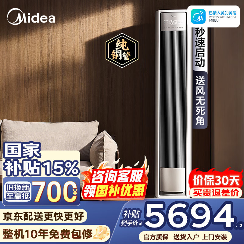 美的(Midea)空调立式大3匹风尊二代全面风柜机新一级能效变频冷暖客厅高颜值柜式空调大风量APP智控 国家补贴 大3匹一级能效全面大风口 无死角送风