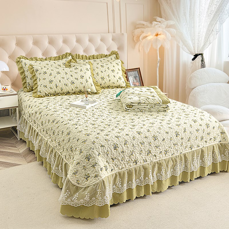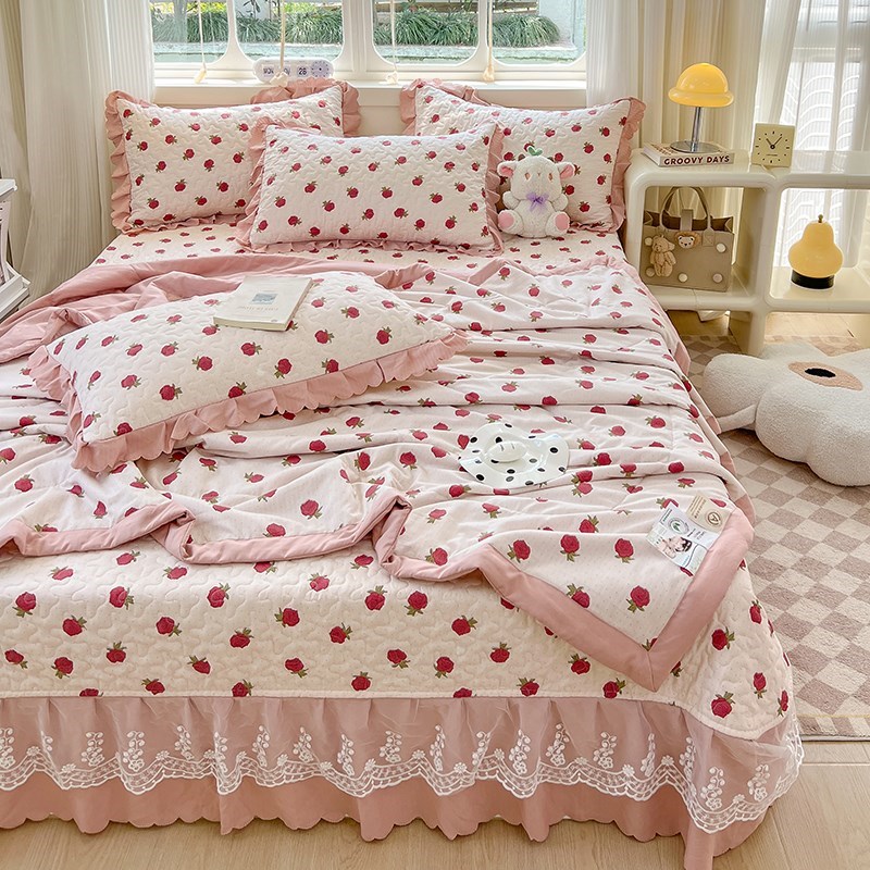 夹棉床盖三件套夏被四件套防滑加厚床单纯棉空调被全棉可机洗薄被