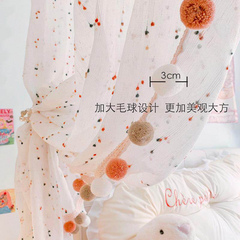 公主风大毛球边床帘家用卧室透气挡空调风纱帘隔断窗透光不透人