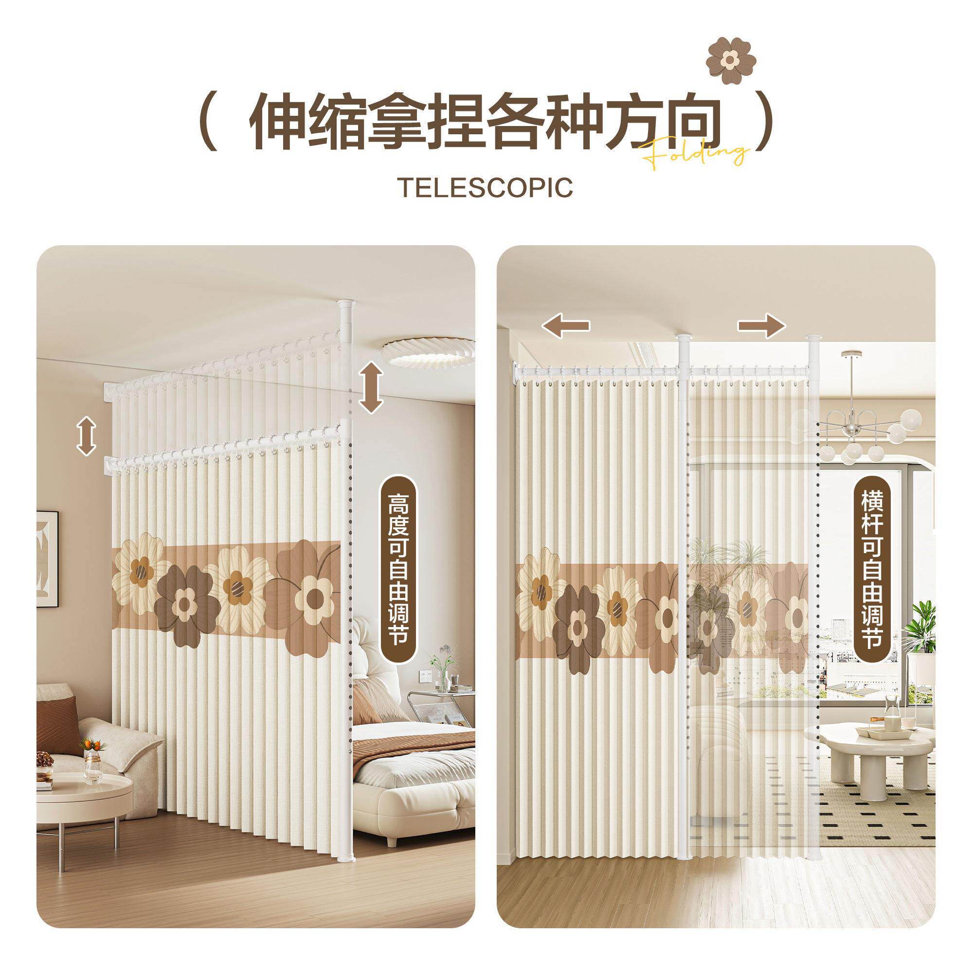 免打孔一房变两房隔断帘客厅改卧室空调遮挡帘房间分隔折叠帘屏风