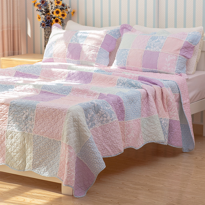 外贸韩式木耳边床盖纯棉拼布绗缝被三件套四季全棉空调被夹棉床单