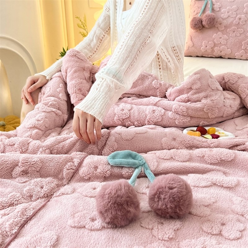 塔芙绒韩式小清新小樱桃抱枕被办公室午睡枕头汽车载空调毯二合一