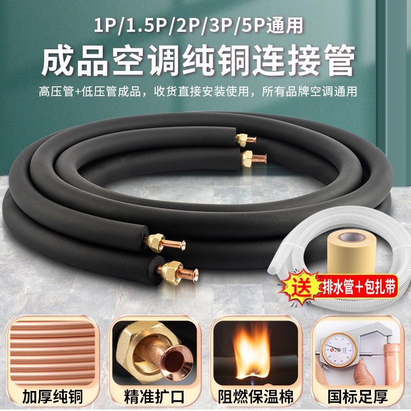 上海飞轮0.8-1.0厚 空调铜管连接管成品 紫铜管冷媒管 1-10匹通用