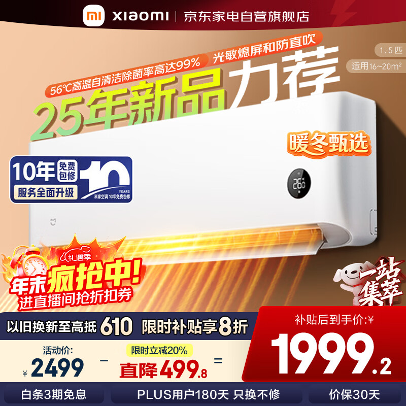 小米(MI)空调1.5匹巨省电【2025新款】睡眠二代新一级能效变频冷暖米家空调挂机35GW-NA20/S1A1